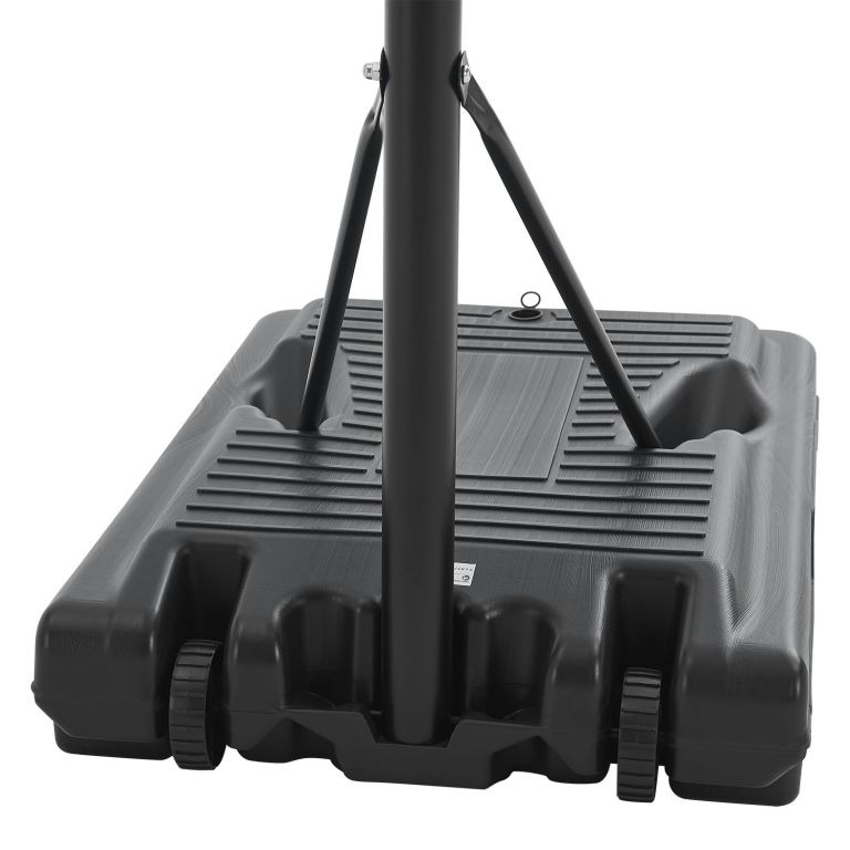 Robustná konštrukcia zaisťuje dlhú životnosť a stabilitu aj pri intenzívnom používaní. Jednoduchá montáž a možnosť naplnenia podstavca vodou alebo pieskom poskytujú bezpečné a pevné ukotvenie. Vďaka veľkým kolieskam je možné kôš ľahko presúvať, čo oceníte pri zmene miesta hry alebo pri upratovaní.