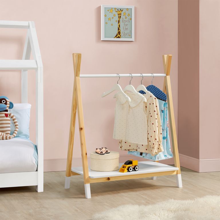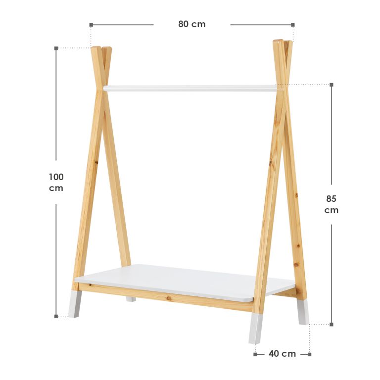 Detský stojan na oblečenie Heidy premení každú izbu na útulné a inšpiratívne miesto. Vďaka prirodzenému dizajnu a jemným líniám sa stane obľúbeným doplnkom nielen pre deti, ale aj pre rodičov. Podporuje samostatnosť a radosť z výberu oblečenia, zatiaľ čo prehľadne usporiada všetky kúsky aj doplnky.