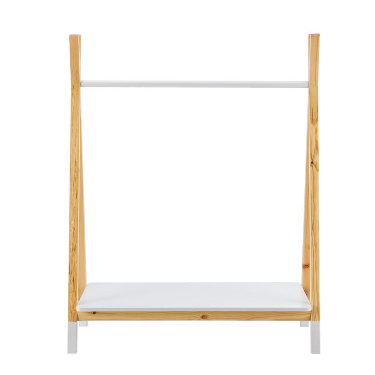 Detský stojan na oblečenie biely, prírodné drevo