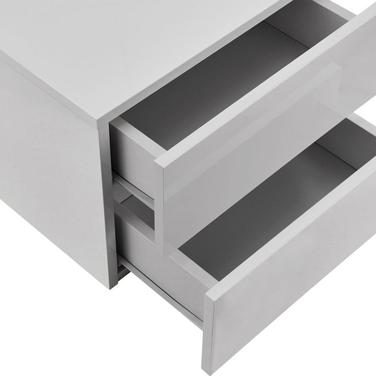 Vytvorte si útulný a praktický priestor pri posteli s týmto elegantným závesným nočným stolíkom. Vďaka dvom priestranným zásuvkám budete mať všetko potrebné vždy po ruke, či už ide o knihu, okuliare alebo drobnosti. Čistý biely dizajn ľahko zladíte s akýmkoľvek interiérom a dodá vašej spálni svieži vzhľad.