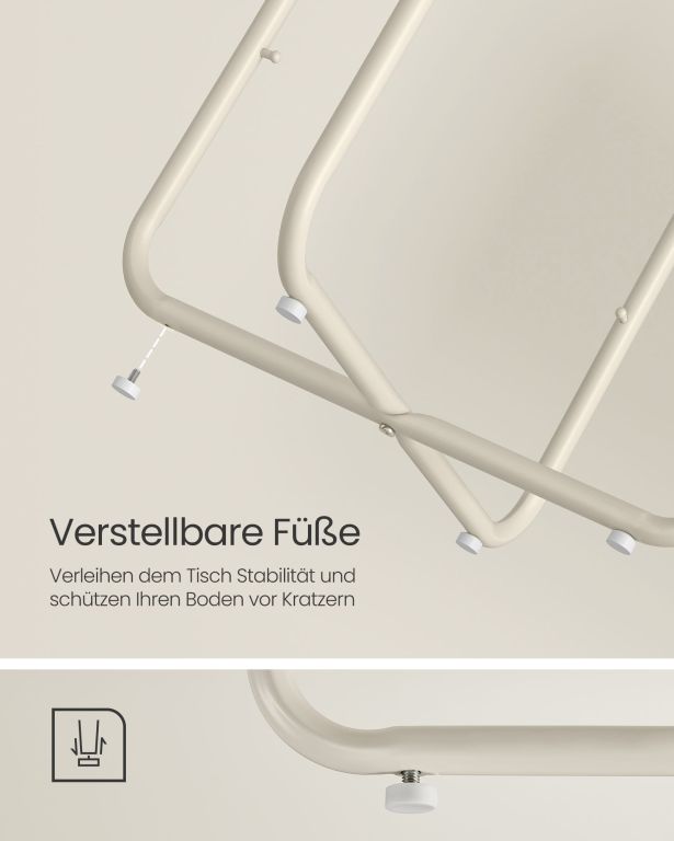 Stolík je vyrobený z odolnej drevotriesky a pevnej ocele, čo zaisťuje stabilitu a dlhú životnosť. Montáž je rýchla a jednoduchá vďaka priloženému návodu. Kôš z polyesteru je bez chemického ošetrenia a ľahko sa čistí. Nastaviteľné nôžky chránia podlahu pred poškriabaním.