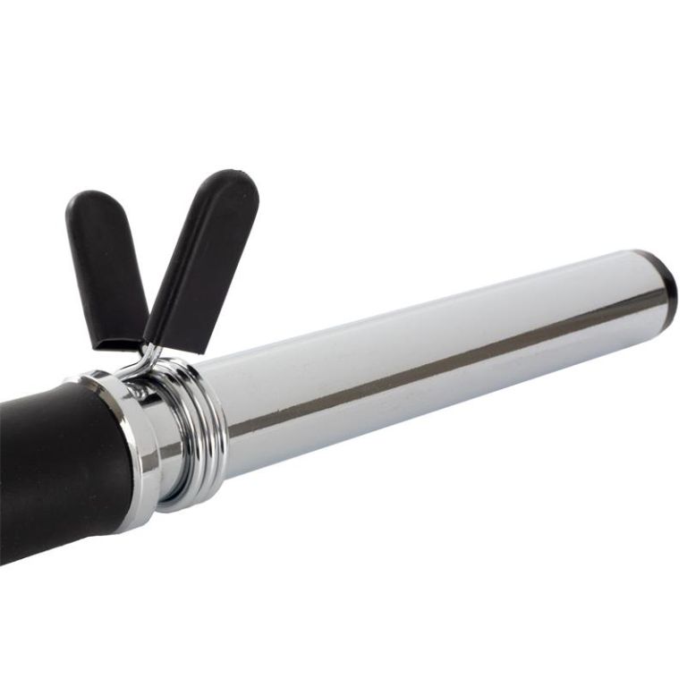 Kvalitná oceľová konštrukcia a penové madlo zaisťujú dlhú životnosť a pohodlie. Pružinové zámky umožňujú rýchlu výmenu závažia a jednoduchú údržbu celej tyče.