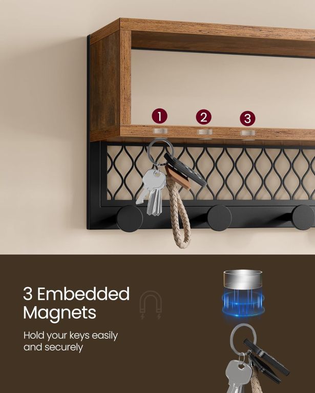 • Praktické detaily – magnetické držiaky na kľúče, nastaviteľné nožičky a množstvo háčikov.