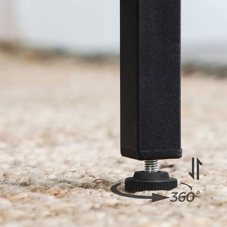 Masívny oceľový rám poskytuje stabilitu až do 100 kg zaťaženia. Dlhá oporná tyč zaisťuje pohodlné podoprenie nôh, nastaviteľné nožičky zabraňujú kývaniu i poškriabaniu podlahy. Stôl ľahko zostavíte vďaka číslovaným dielom a prehľadnému návodu – hotovo iba za 15 minút. Ideálna výška umožňuje pohodlné usadenie barových stoličiek s výškou 61–66 cm.