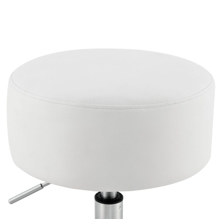 Vďaka výškovo nastaviteľnej konštrukcii si ľahko prispôsobíte výšku taburetu svojim potrebám. Stabilná kovová základňa zaisťuje bezpečné sedenie a jednoduchú údržbu - stačí utrieť vlhkou handričkou. Taburet je vhodný na každodenné použitie a unesie až 120 kg.
