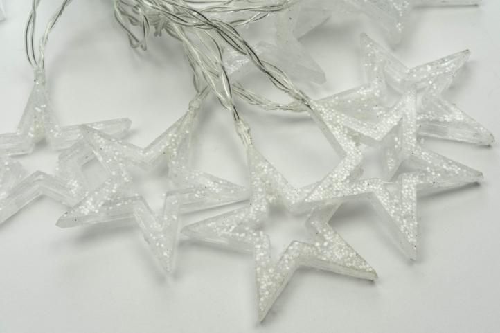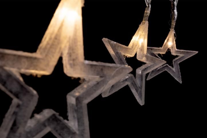 Vianočné dekoratívne osvetlenie vo forme svetelnej reťaze s trblietavými hviezdami vnesie do Vášho domova krásne zimné čaro. Vďaka napájaniu na batérie nebudete limitovaný tým, kam osvetlenie umiestniť a všetko závisí len na Vašej fantázii.