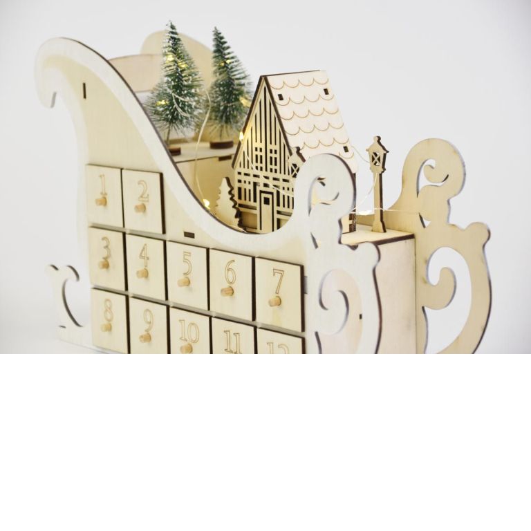 Úvod » Vianoce 2025 » Vianočný adventný kalendár, sane, 10 LED, na batérie