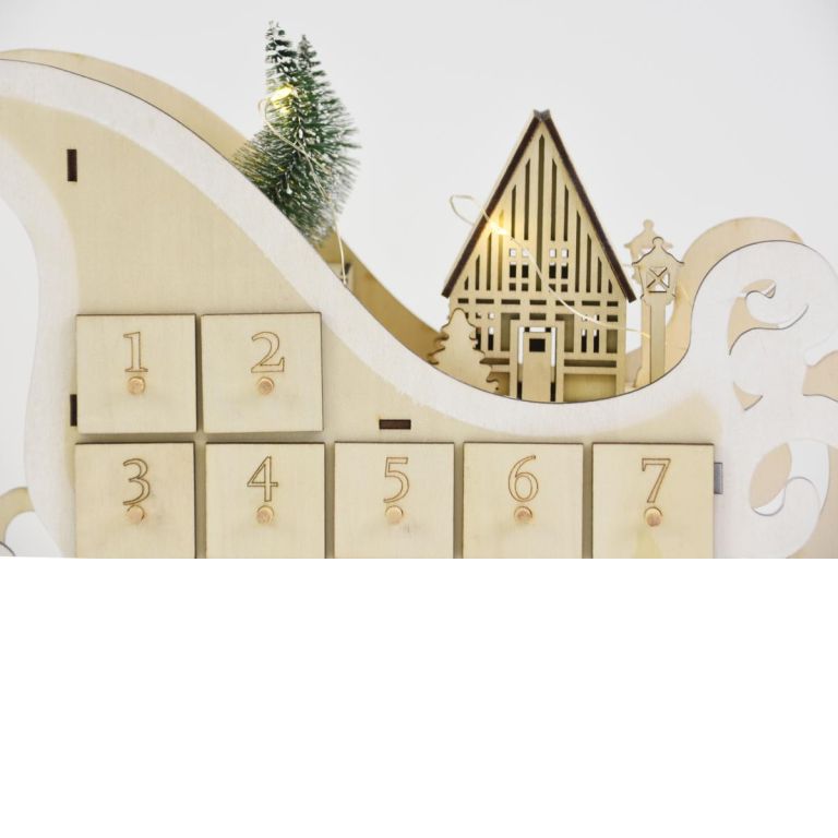 Vianočný adventný kalendár, sane, 10 LED, na batérie