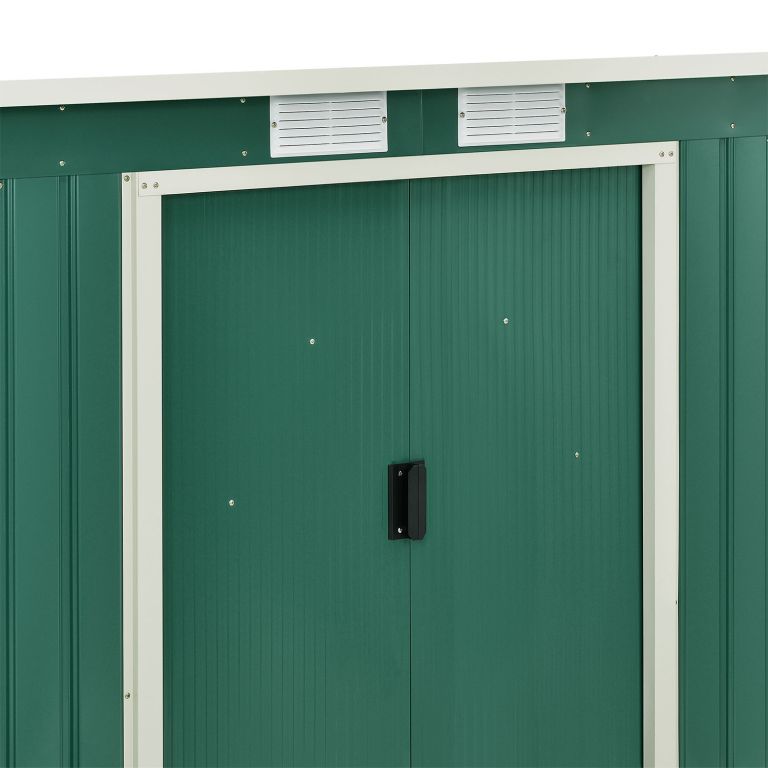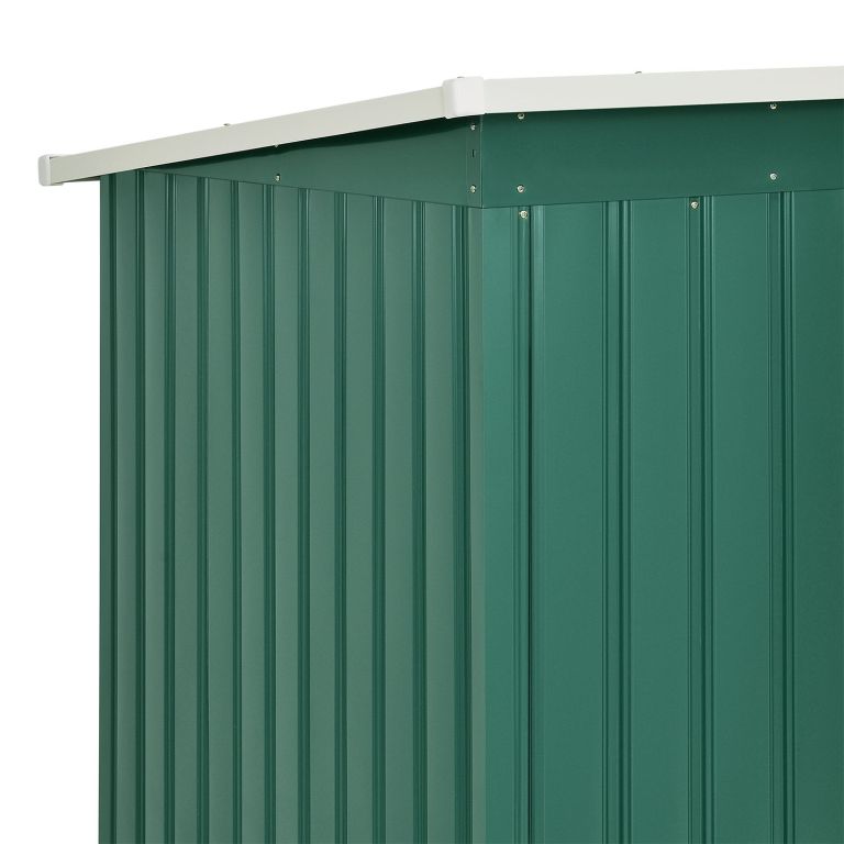 Užite si poriadok a pokoj na svojej záhrade vďaka tomuto priestrannému domčeku na náradie. Moderný tmavo zelený dizajn sa hodí do každého prostredia a poskytne bezpečné miesto pre vaše vybavenie aj v zime.